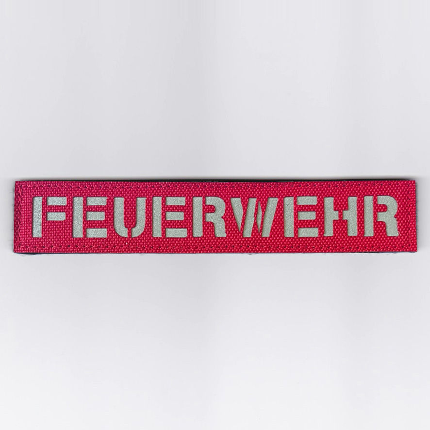 Feuerwehr Schriftzug mit silber-grau reflektierender Schrift.
